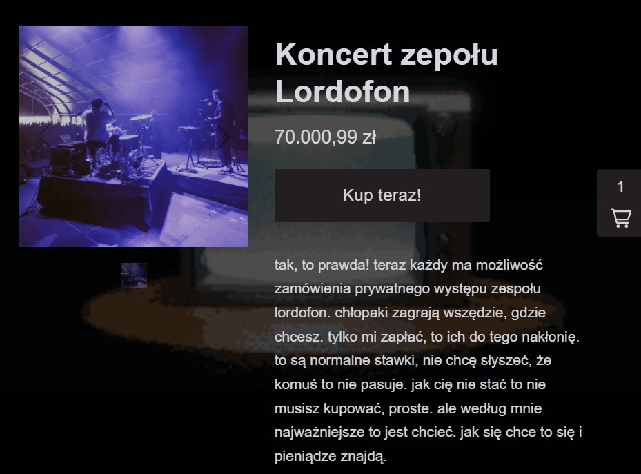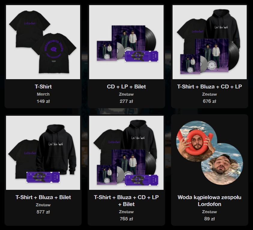 70 tys. zł i 99 groszy – tyle kosztuje koncert zespołu Lordofon, który można po prostu wrzucić do koszyka w ich oficjalnym sklepie.