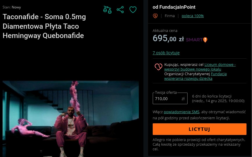 W ramach kampanii świątecznej serwisu Allegro, pojawiła się nie tylko diamentowa płyta Quebonafide „Romantic Psycho”, ale także krążek Taconafide.