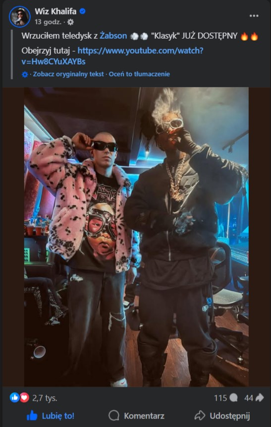Kooperacja Żabsona z Wizem Khalifą zatacza coraz szersze kręgi. Numer nie jest promowany nie tylko przez polskiego rapera, ale włączyła się w to też druga strona.