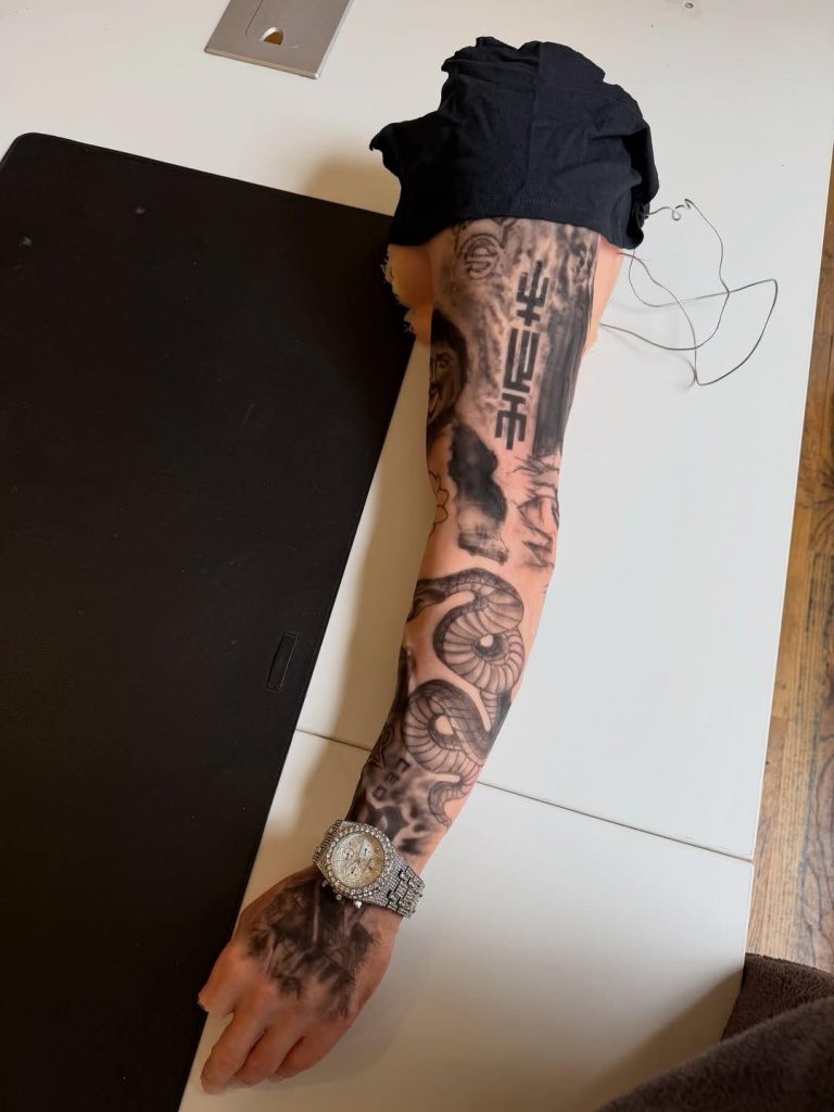Do stworzenia instalacji wykorzystano pełnowymiarową silikonową replikę ramienia rapera. Projekt powstawał przez dwa miesiące. Punktem wyjścia był skan 3D, a każdy tatuaż został odtworzony ręcznie przez czteroosobowy zespół artystów.