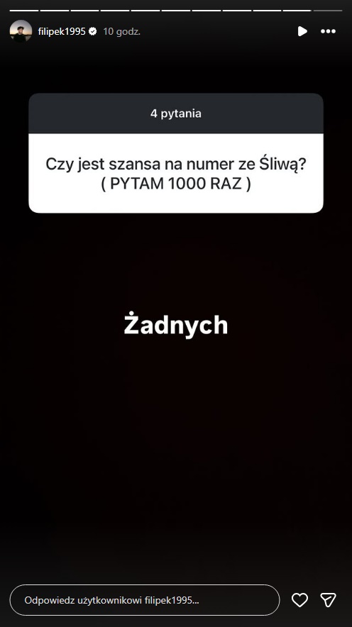 Kilka tygodni temu Filipek ogłosił, że robi sobie przerwę od koncertów. Raper jednak cały czas jest aktywny w sieci i odpowiada na pytania fanów.