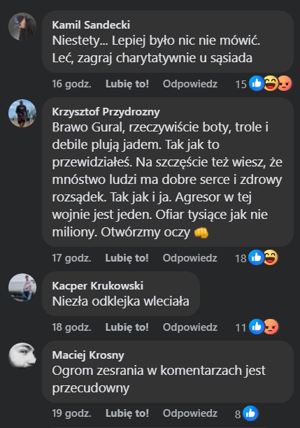 Gural uczcił 4 rocznicę wybuchu wojny w Ukrainie, ale takiej krytyki się chyba nie spodziewał