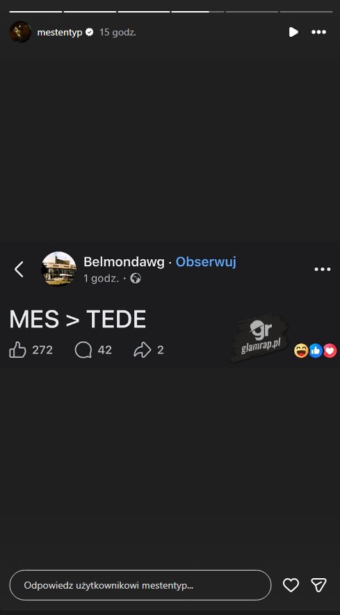 Mimo wszystko Belmondo wskazał Mesa jako wygranego. Skąd taka decyzja, nie wiadomo, bo raper ograniczył się tylko do wskazania zwycięzcy. Nie uszło to uwadze Tego Typa, który repostował u siebie lakoniczny wpis Belmondziaka.
