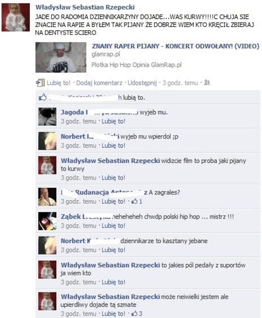 – Kozak. Nigdy nie zrozumiem hejtu na jego osobę. Kibicuję odkąd miał naście lat i rapował do kamerki w swoim pokoju. Ma lepsze wyczucie, flow i teksty niż większość raperów w Polsce. To jest rap 21 wieku. Jak wyszedł kilka temu na scenę i powiedział na koncercie, że kto nie jest z nimi to ssie, to pomyślałem sobie że o to chodzi i to było mega rapowe – wielki props za to. Z tego co pamiętam, chyba nawet za to przepraszał, choć nigdy nie powinien. Wszystkie rapowe legendy, które sieją nienawiść dookoła tego człowieka moim zdaniem powinny się wstydzić za siebie. Mi byłoby wstyd mieć +/-40 lat i się tak zachowywać – napisał.