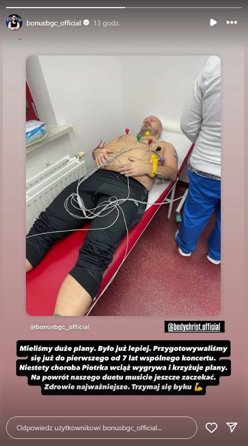 Bonus i BodyChrist planowali w tym roku wielki powrót – miał to być pierwszy wspólny koncert duetu od siedmiu lat. Niestety, stan zdrowia Piotra nie pozwala na realizację tych planów.