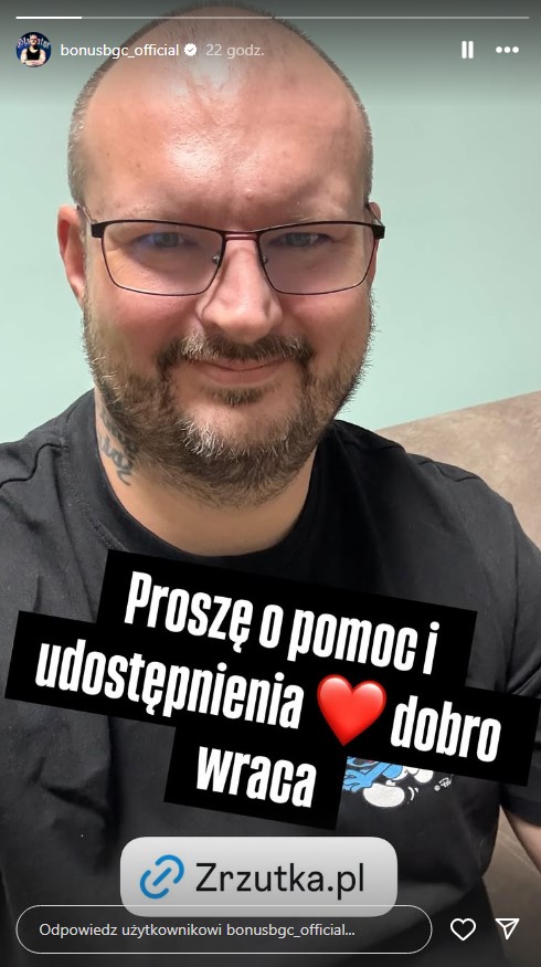 – Jutro idę pierwszy dzień do szpitala psychiatrycznego na oddział dzienny – poinformował Bonus. – Trzymajcie kciuki. Dziękuję za Wasze wiadomości za pomoc i nieocenione wsparcie . Potrzebuje Was – dodał.
