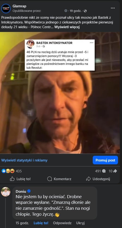 Nasz wpis o Bastku, krakowskim raperze, który znalazł się w podbramkowej sytuacji wywołał wiele emocji. Współtwórcę PCP i Intoksynatora postanowił wesprzeć Doniu.
