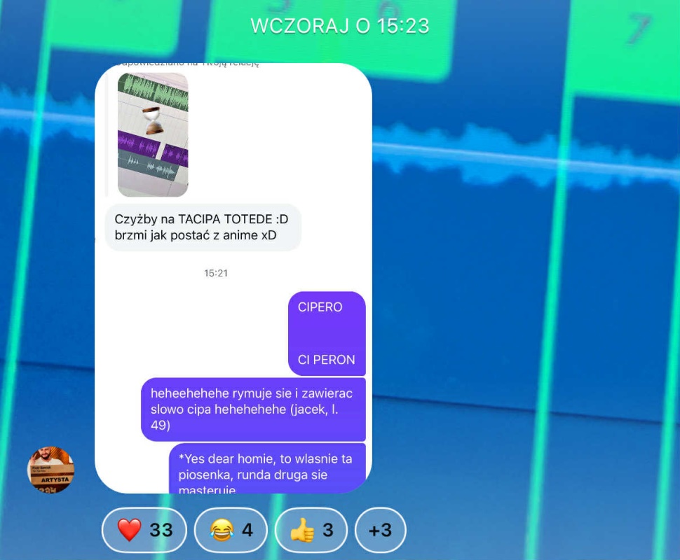 Przedwczoraj Mes wrzucił na Instagramie krótkie nagranie ze studia, a dzień później odpowiedział fanowi na swoim kanale nadawczym: „Yes dear homie, to właśnie ta piosenka, runda druga się masteruje”.