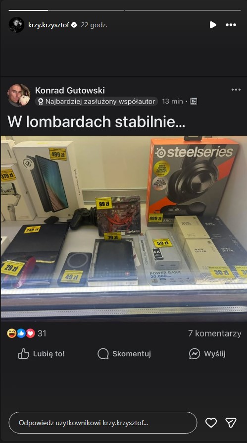 Krzy Krzysztof opublikował post jednego z użytkowników, który pokazał cenę płyty Quebonafide „Egzotyka” w Lombardzie. Krążek został wyceniony na 99 zł. Czy to dobra cena? Ten album jesteśmy w stanie kupić zarówno taniej jak i drożej – i nie ma tu reguły czy jest zafoliowany czy używany.