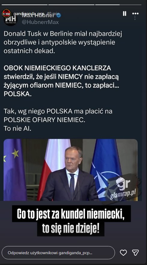 Premier Donald Tusk podczas wizyty w Berlinie wypowiedział się o reparacjach dla Polski. raper Gandi Ganda, hypeman Peji zrugał szefa rządu.