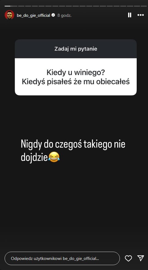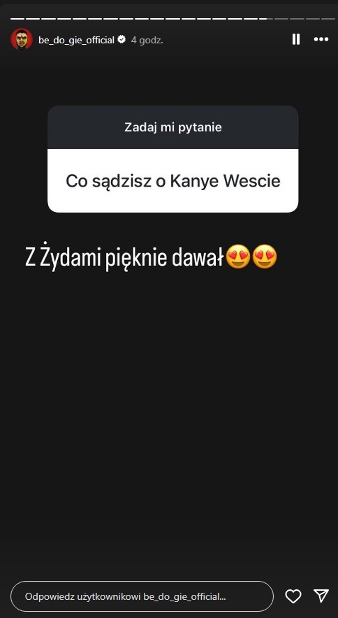 – Wadzić mi nie wadzi, zawsze był specyficzny i się do tego przyzwyczaiłem. Ale powiem rzecz, jakiej nikt nie powie – żaden z raperów, jakich znam, nie lubi swojego fanbase’u (może poza takim Szpakiem czy Bedoesem). A ci, którzy piszą „hej kochani, wracam do Was z numerem po przerwie, stęskniłem się” to tym bardziej nie sympatyzują ze swoimi słuchaczami, ale nie powiedzą tego, bo mają z tyłu głowy spadek zasięgów – napisał.