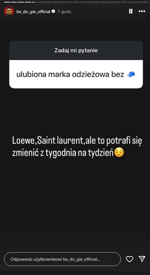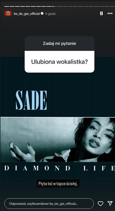Ponadto raper ujawnił, że nie zobaczymy go w programie Winiego, a jego ulubiona wokalistka to Sade.