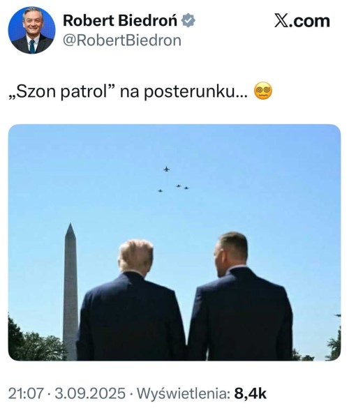 Robert Biedroń słynie z pajacowania w social mediach. Lewacki polityk tym razem próbował zabłysnąć na tle ludzkiej tragedii i zadrwił z hołdu dla Macieja Krakowiana. – Szon patrol na posterunku – podpisał wspólne zdjęcie Trumpa i Nawrockiego na tle odrzutowców, lecz po druzgocącej krytyce zostało ono usunięte.