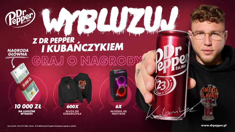 Dr Pepper intensyfikuje działania w Polsce, stawiając na współpracę z jednym z najpopularniejszych raperów młodego pokolenia. Kubańczyk jako ambasador marki ma zachęcać fanów do wzięcia udziału w aktywacji pod hasłem „Wybluzuj z Dr Pepper i Kubańczykiem”, czyli pokazania własnego sposobu na luz i zgarniania nagród.