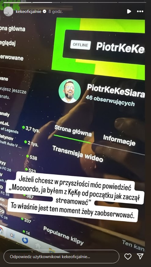 KęKę, po sukcesie swojej ostatniej płyty, szuka nowych form kontaktu z odbiorcami. Tym razem postawił na streaming i niespodziewanie pojawił się na Kicku.