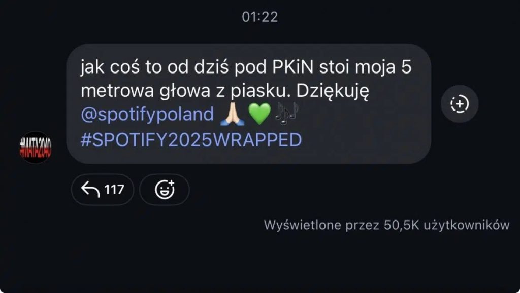 W 2025 roku najczęściej słuchanym artystą w Polsce był Mata. W związku z tym w centrum Warszawy powstaje wielka rzeźba głowy rapera. W czwartek wieczorem robotnicy ustawiali monument przy pomocy rusztowania.