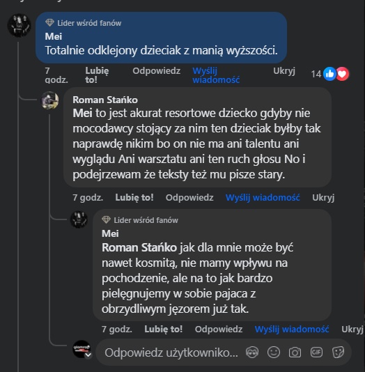 – Totalnie odklejony dzieciak z manią wyższości – napisała. Kiedy jeden z komentujących nazwał rapera „resortowym dzieckiem”, Mei mu odpowiedziała: