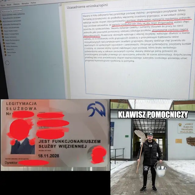 Powiedz ludziom za co wychowawca wystawił ci laurkę w opinii do sądu i nie widział tam twojej rzekomej sztywności? Te twoje wnioski nagrodowe nie wzięły się z milczenia, tylko z bycia wzorowym pupilem systemu. Oszukałeś pół Polski legendą o siedzeniu za niewinność, żeby ludzie wpłacali ci kasę. Teraz gdy prawda wychodzi na jaw, nagle zmieniasz narrację na „siedzenie za honor”.
