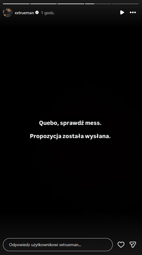 Chodzi o nadchodzącą płytę Sentino „Zabójstwo liryczne 5”. Pod wpisem Truemana fani zaczęli go zachęcać do działania w tym temacie i im się udało, bo chwilę później poinformował, że napisał do Quebonafide z propozycją.