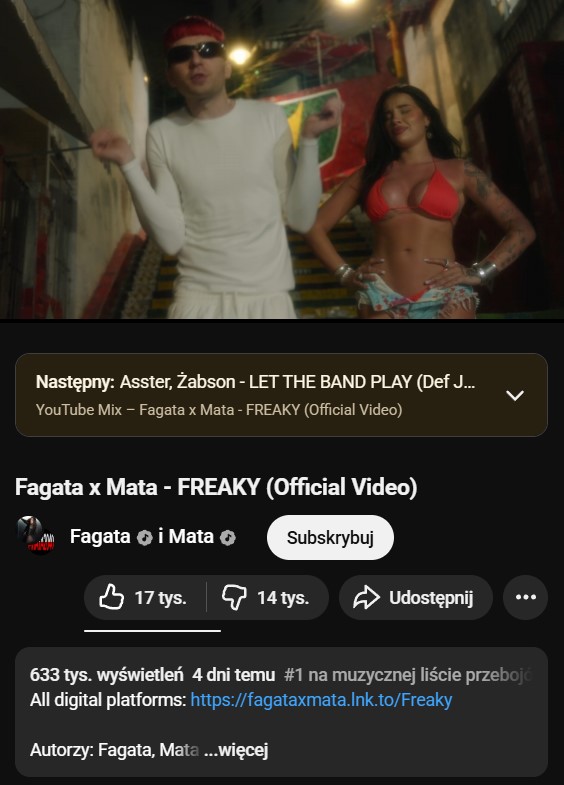 Mata poszedł na całość i podjął pełnofalową współpracę z Fagatą. Zatrudnił ją do promowania koncertów, zakontraktował w wytwórni, a także zaprosił na jeden z występów. Zwieńczeniem jego ruchów wobec influencerki było nagranie z nią numeru „Freaky”. Pół biedy byłoby, gdyby numer się obronił, ale nic takiego nie miało miejsca. Raper przejął schedę po nowej koleżance i zaczął rzucać w numerze jej tekstami o „r*chaniu”. Efekt prosty do przewidzenia – współpraca Maty i Fagaty nie odbiła się dobrym echem wśród odbiorców.