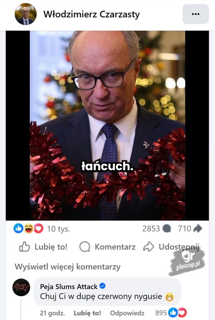 Krótki, lecz dosadny wpis lidera Slums Attack spotkał się z dużym uznaniem wśród komentujących i zebrał blisko 1 tys. reakcji.