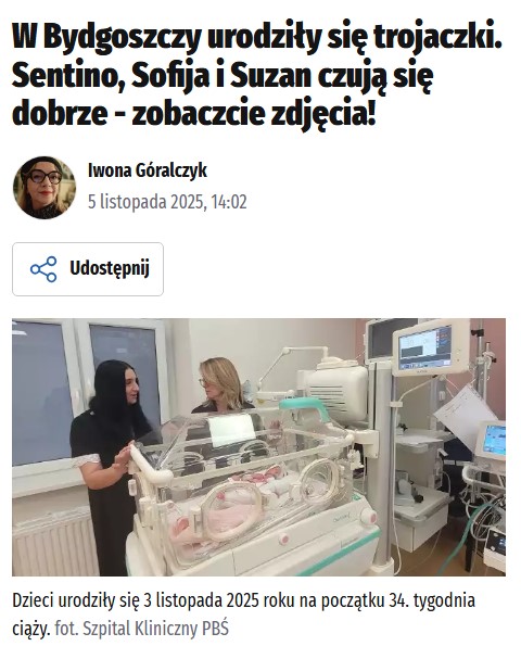 Rodzice dali synowi na imię Sentino – w Bydgoszczy urodziły się trojaczki