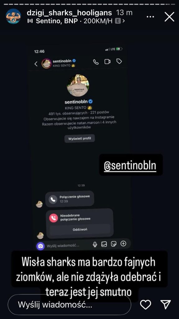 Dzigi ze swoją przewózką miałby potencjał zostać internetowym królem festów, gdyby ta podkultura jeszcze realnie istniała. Krakowianin niejednokrotnie robił przypał oponentom rozwięzłymi opowieściami w social mediach, ale w przeciwieństwie do np. Haniora jest bardzo przewrażliwiony, gdy ktoś zarzuca mu frajerskie akcje. Długi język byłego chuligana Wisły najwyraźniej zrobił wrażenie na Sentino. Seba próbował się dodzwonić do Dzigiego na Instagramie, jednak wybrał zły moment, bo połączenie nie zostało odebrane. Czy pierwsza próba kontaktu między nimi przełoży się kiedyś na jakąś współpracę? Zapewne przekonamy się wkrótce. Na pewno wiemy, że Dzigi miał okazję przeciąć się już z Malikiem, z czego powstało pamiątkowe zdjęcie.
