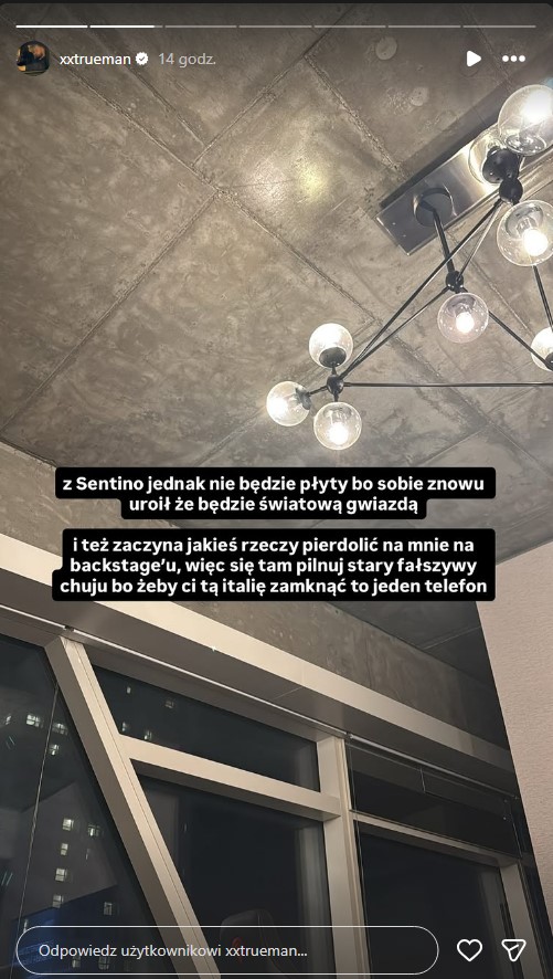 Wystarczyło tylko kilka dni, żeby Sentino znów pożarł się z Truemanem. Tymczasem jego manager informuje, że wyda w styczniu płytę „Zabójstwo Liryczne 5.0” nawet samodzielnie.