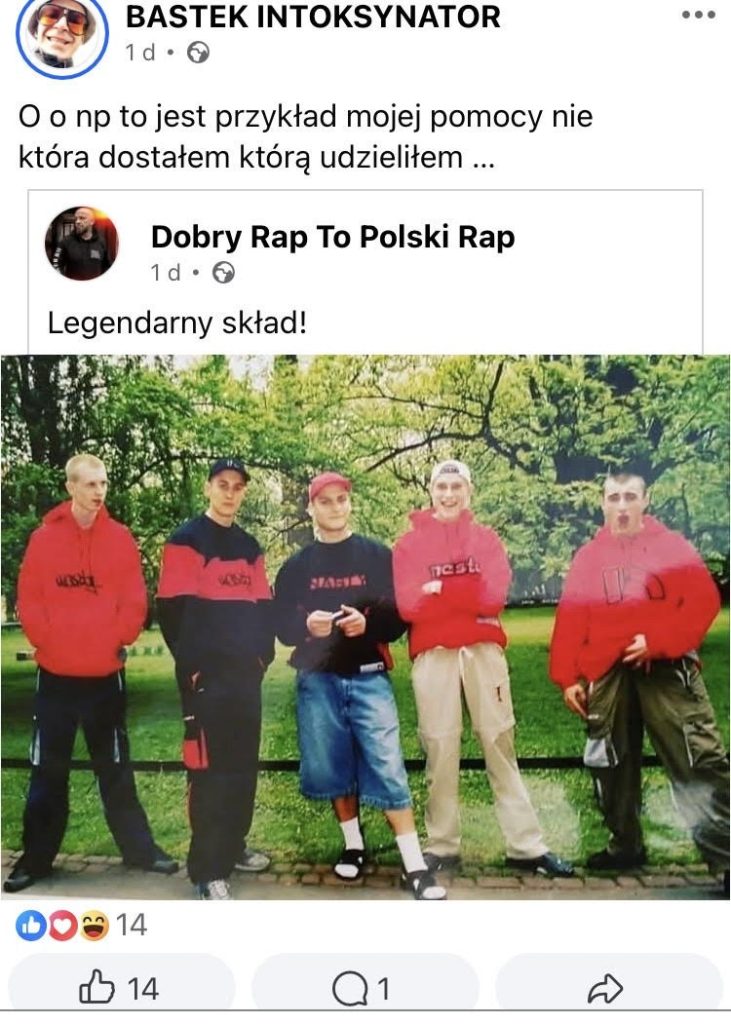 Kto wie, jak potoczyłby się kariera Kaliego czy Popka, gdyby nie Bastek. Aktualnie bezdomny weteran krakowskiej sceny wydatnie pomógł się wypromować Firmie, współprodukując ich debiut i udzielając wielu wskazówek na początku kariery. Teraz Bastek zamieścił wymowny wpis, który można potraktować jako szpilę wbitą byłym kolegom.