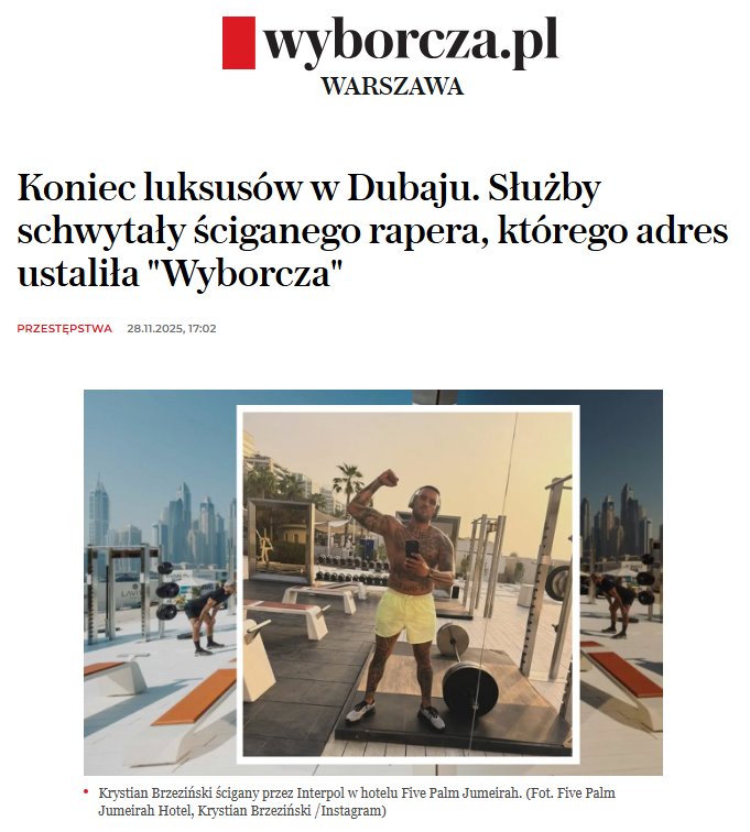 Po zatrzymaniu rapera na łamach Gazety pojawił się taki artykuł na jego temat: „Koniec luksusów w Dubaju. Służby schwytały ściganego rapera, którego adres ustaliła Wyborcza.