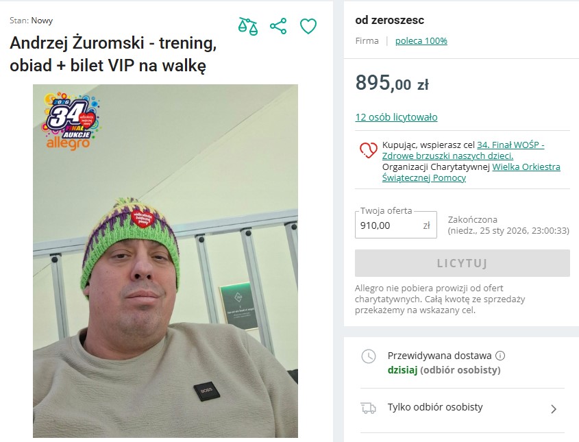 W opisie licytacji jasno przedstawiono plan dnia. – Spędź dzień z Żuromem. Zacznij od wspólnego treningu bokserskiego. Później wybierz się na wspólne morsowanie (dla chętnych). Na koniec zjedz wspólny, gorący obiad i porozmawiaj prywatnie. Po wszystkim zgarnij bilet VIP na kwietniową walkę Żuroma – brzmiała oferta, która ostatecznie osiągnęła kwotę 895 zł.