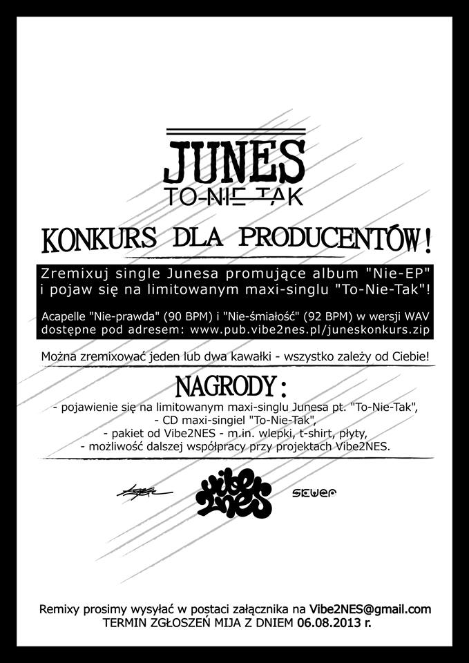 Przedstawiamy konkurs dla producentów! Zremixuj single Junesa promujące album „Nie-EP” i pojaw się na limitowany maxi-singlu „To-Nie-Tak”.